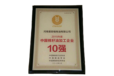 2015中國棉籽油加工企業(yè)10強(qiáng)